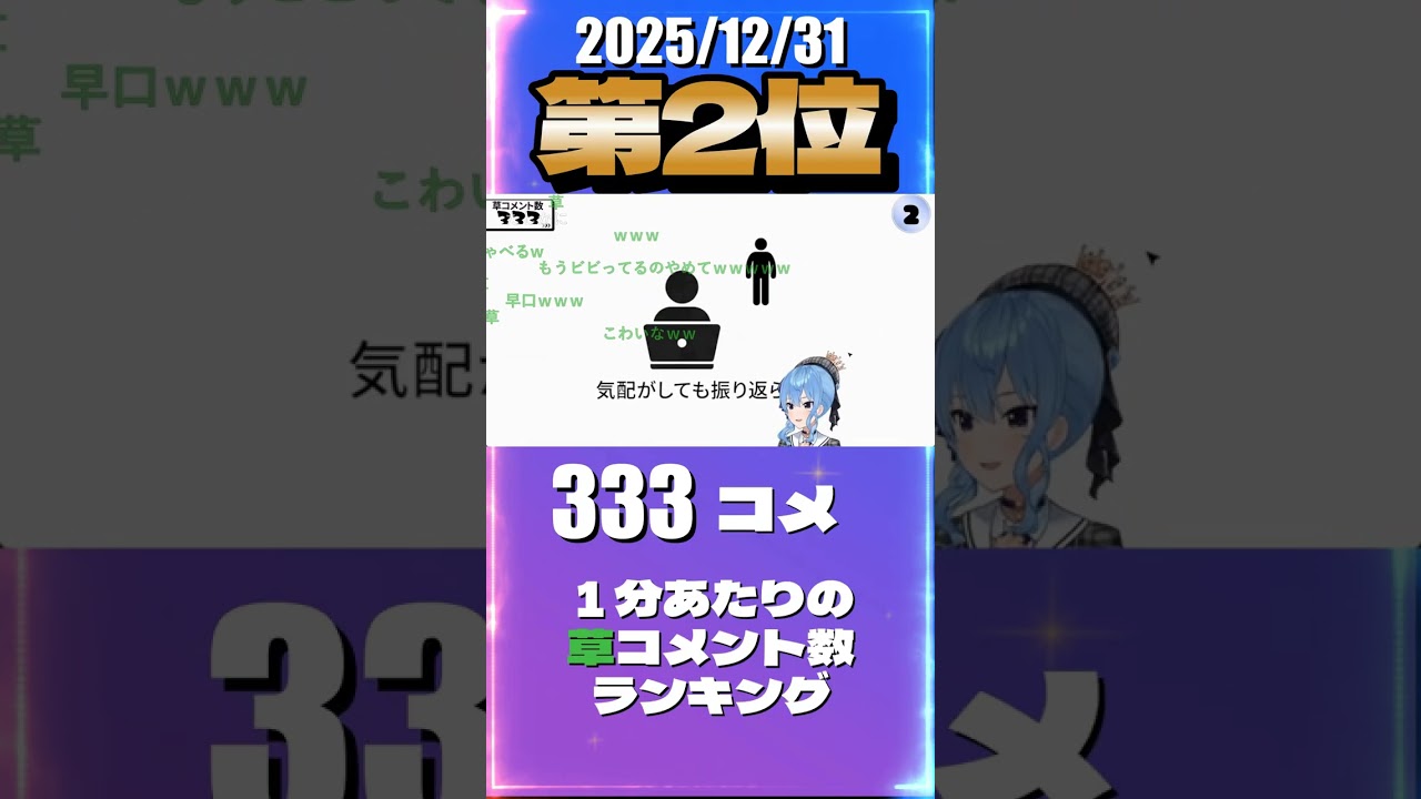 12/31 草コメント数ランキング第2位 #星街すいせい 0時間12分ごろ