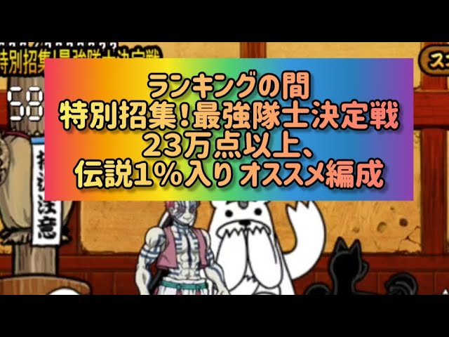 スポンサーリンクランキングの間 特別招集!最強隊士決定戦22万点以上、伝説1%入り オススメ編成【にゃんこ大戦争】スポンサーリンクGamingTwitterFacebook0はてブ0Pocket0LINEコピー2026.01.30<動画情報> 動画作成者またはチャンネル等 猫叉Master 動画の再生時間 01:47 公開日 2026-01-30 12:06:11