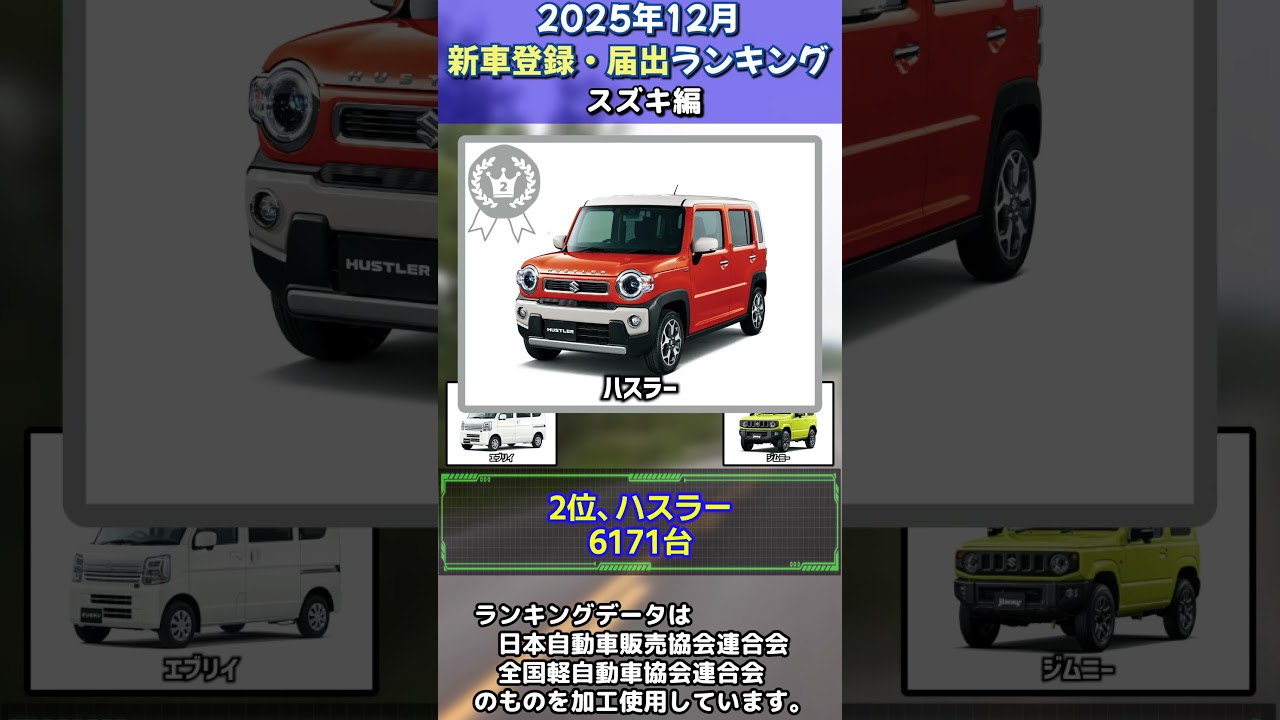 スポンサーリンク2025年12月 スズキ 新車登録・届出ランキングTOP5スポンサーリンクAutos & VehiclesTwitterFacebook0はてブ0Pocket0LINEコピー2026.02.06<動画情報> 動画作成者またはチャンネル等 ゆっくりタコカーライフ 動画の再生時間 00:23 公開日 2026-02-06 20:00:22