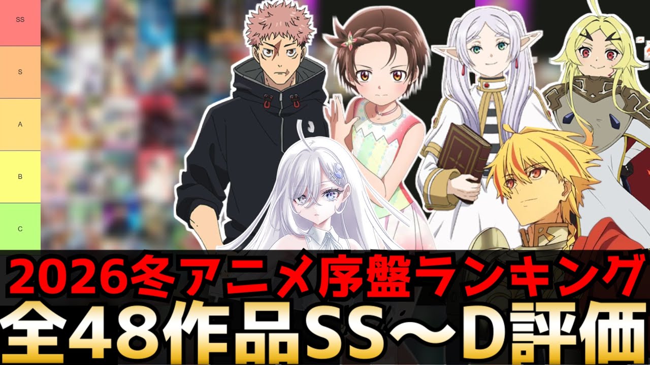 スポンサーリンク2026冬アニメ序盤評価ランキング 全48作品SS〜D【勇者刑に処す、違国日記、メダリスト2期、葬送のフリーレン2期、Fate/strange Fake、エリスの聖杯、呪術廻戦3期】スポンサーリンクFilm & AnimationTwitterFacebook0はてブ0Pocket0LINEコピー2026.02.12<動画情報> 動画作成者またはチャンネル等 TERUちゃん 動画の再生時間 02:14:35 公開日 2026-02-11 21:55:12