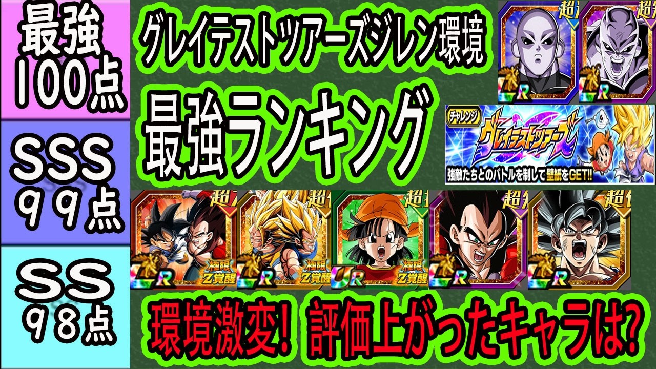 【ドッカンバトル】グレイテストツアーズジレン環境全キャラ最強ランキング!環境激変!期間限定!8周年極限Z覚醒使用後評価は?リバ4評価は?ジレン実装で評価上げたキャラは?