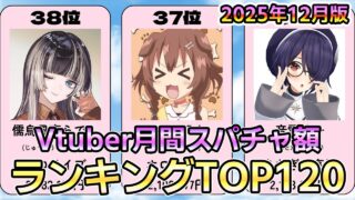 【2025年12月版】Vtuber月間スパチャ額ランキングTOP120