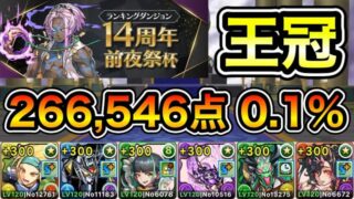 Gaming【パズドラ】改良版!目指せ達人コンボ!王冠14%以内!ランキングダンジョン!14周年前夜祭杯!266,546点!0.1%!【ランダン】
